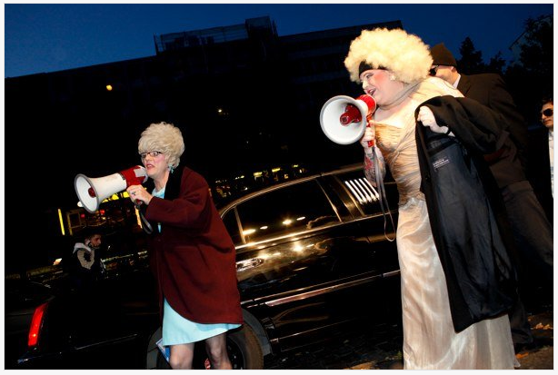 Tuntenspaziergang gegen Clause 25/28 „Tortenheber – Sahnesteif…“ 1991 (Hamburg, Britisches Konsulat)