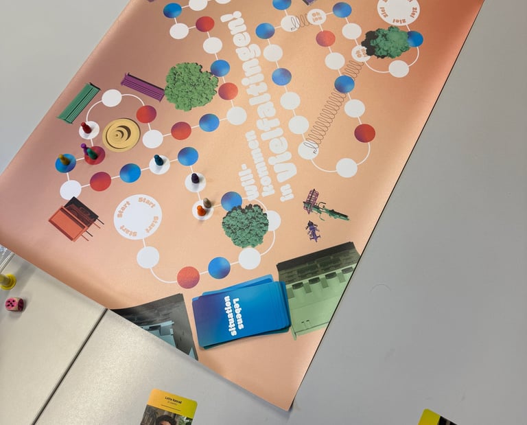 Ein Workshop-Spiel, bei dem die Mitspielenden aus der Sicht unterschiedlicher Personas erleben wie unfair im Leben Privilegien verteilt sind. Und wie eine Stadt inklusive werden kann. In verschiedensten Szenarien verstehe die Mitspieler, warum eine Alltagssituation für eine Person eher lapidar ist aber für eine andere Person eventuell lebensentscheidend...